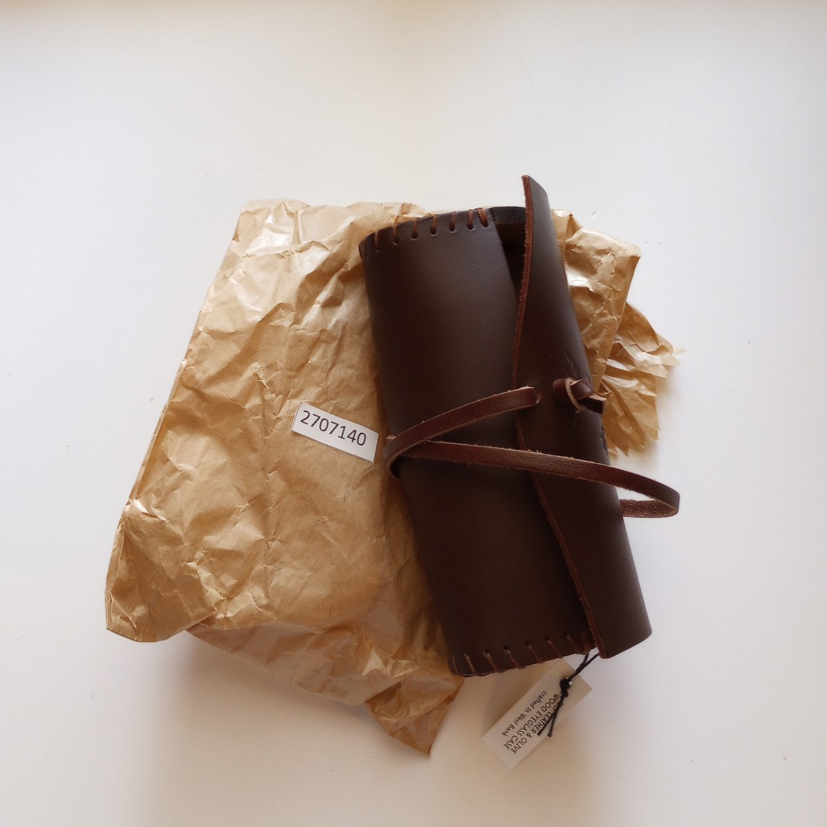 Eyeglass case round w/wrap lthr/olive wd 6Lx2.5D