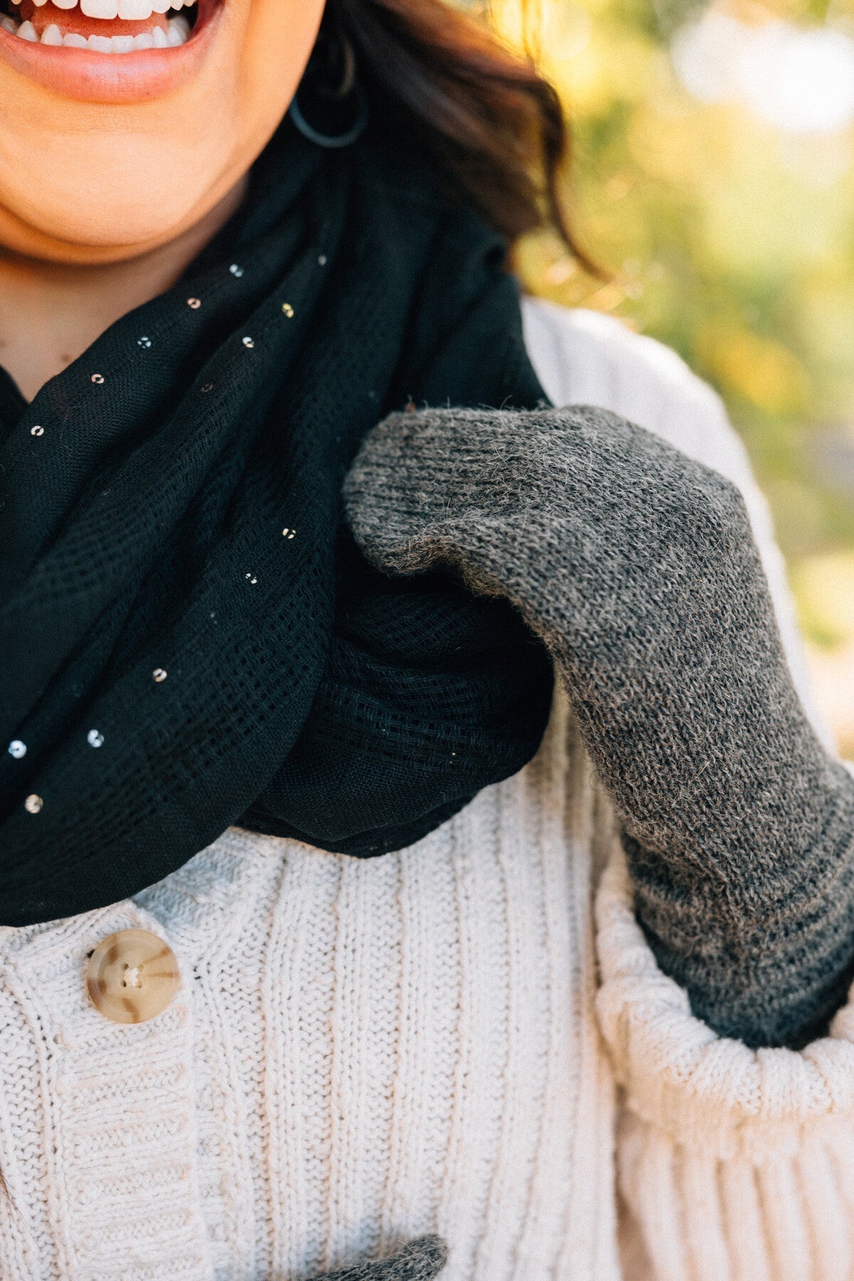 Effortlessly elegant and lightweight. Drape yourself in this black textured woven scarf with subtle silver sequins. Made of viscose, a plant-based textile made from organic agricultural products: banana, pineapple, jute, cotton, or other plant fibers. These are eco-friendly and biodegradable products that avoid polluting or damaging the environment. Handcrafted by artisans working with our fair trade partner, Noah's Ark International Exports, where makers learn the skills to start their own independent business.
