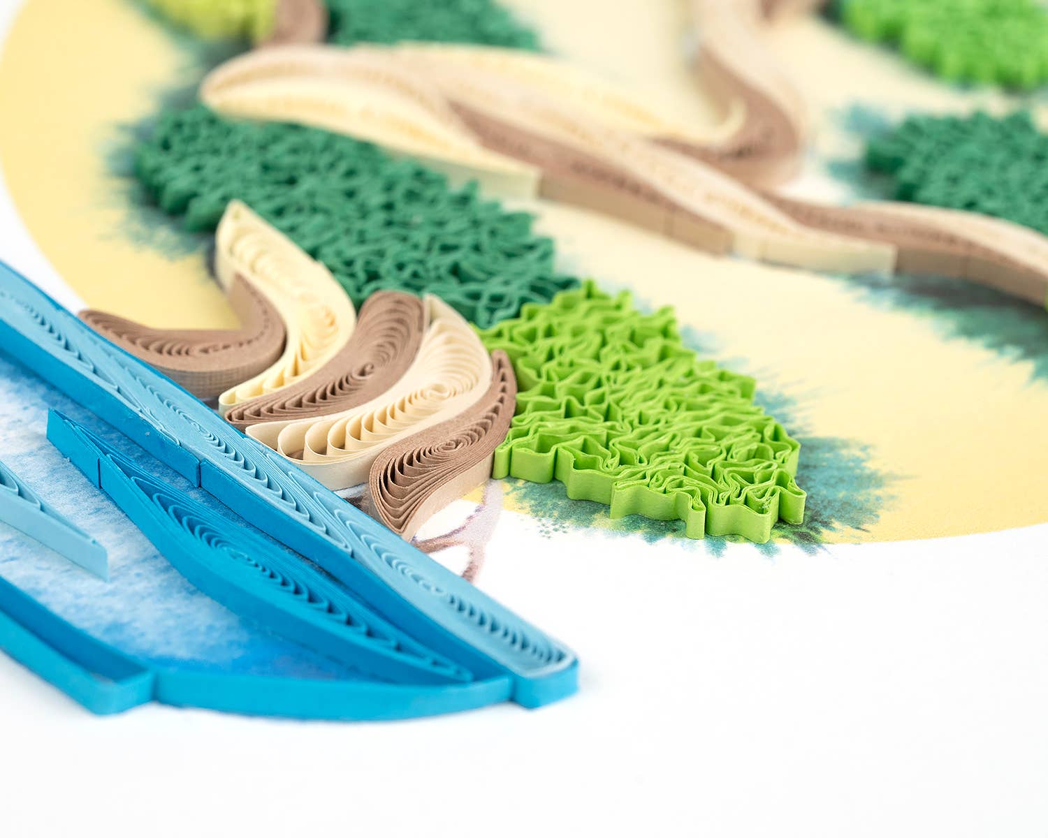 All of our cards come with a coordinating envelope, and a short history of quilling on the back of the card. Our square cards require extra postage.
