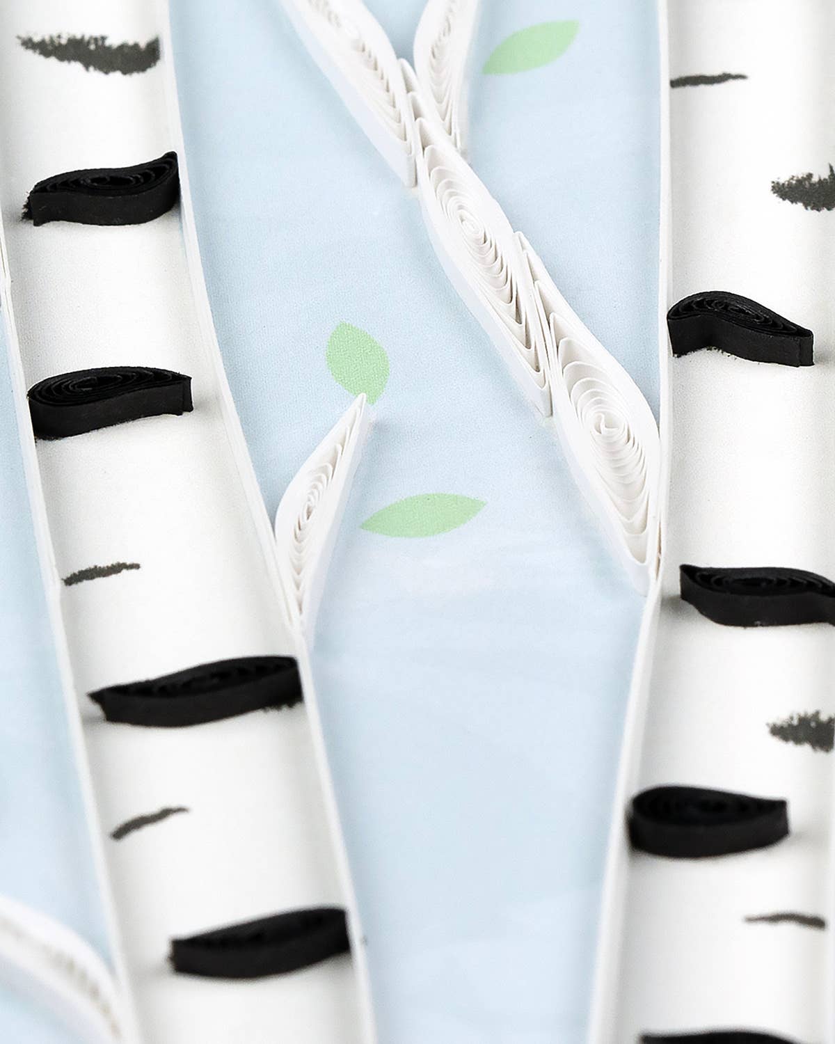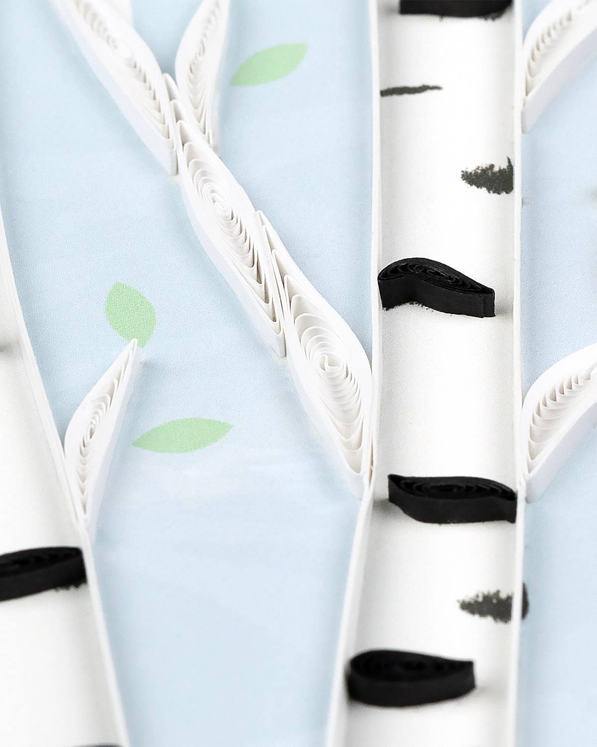 All of our cards come with a coordinating envelope, and a short history of quilling on the back of the card. Our square cards require extra postage.