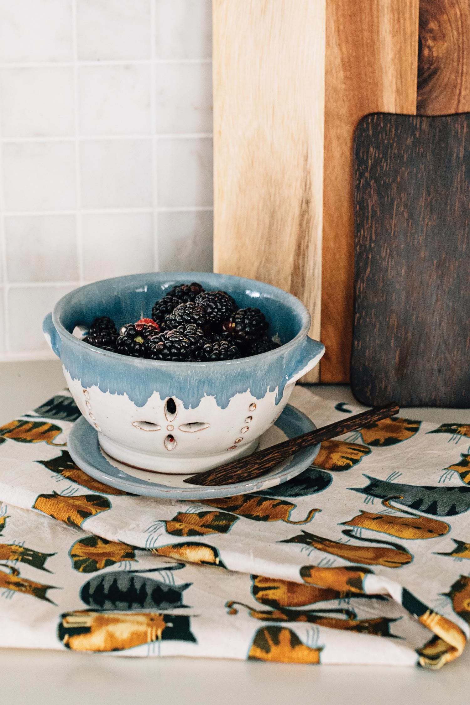 It's the cat's meow! This cotton tea towel, with an orange and gray kitty print on a cream-colored background, will bring a playful vibe to your kitchen. From our artisan partner group CRC Exports in India, which helps small, informally organized craft workshops develop into self-sustaining businesses. CRC provides marketing, design and exporting assistance. CRC also insists on environmentally friendly production methods and materials and encourages coordination among producer groups.