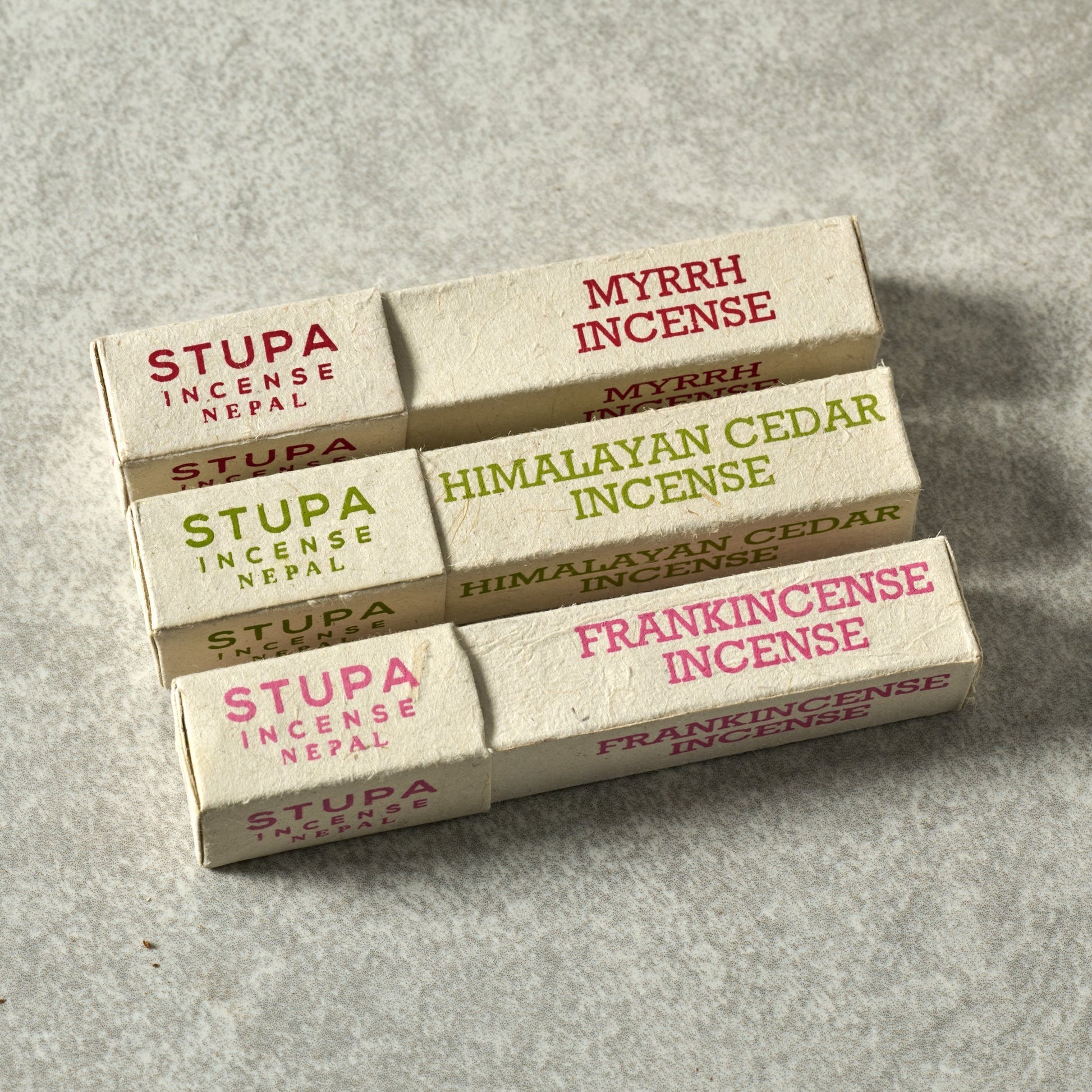 Prepare to relax and unwind! This set comes with fifteen Himalayan cedar incense sticks, as well as a simple black ceramic holder, making it a fantastic incense starter kit! The attractive lotka paper box is included, creating the perfect package for gifting. Made by artisans with Sana Hastakala, which means "small handicraft" in Nepali. Sana Hastakala is a nonprofit which works to preserve the rich artistic skill and traditions of the Nepalese and provides additional training and marketing assistance to artisans.