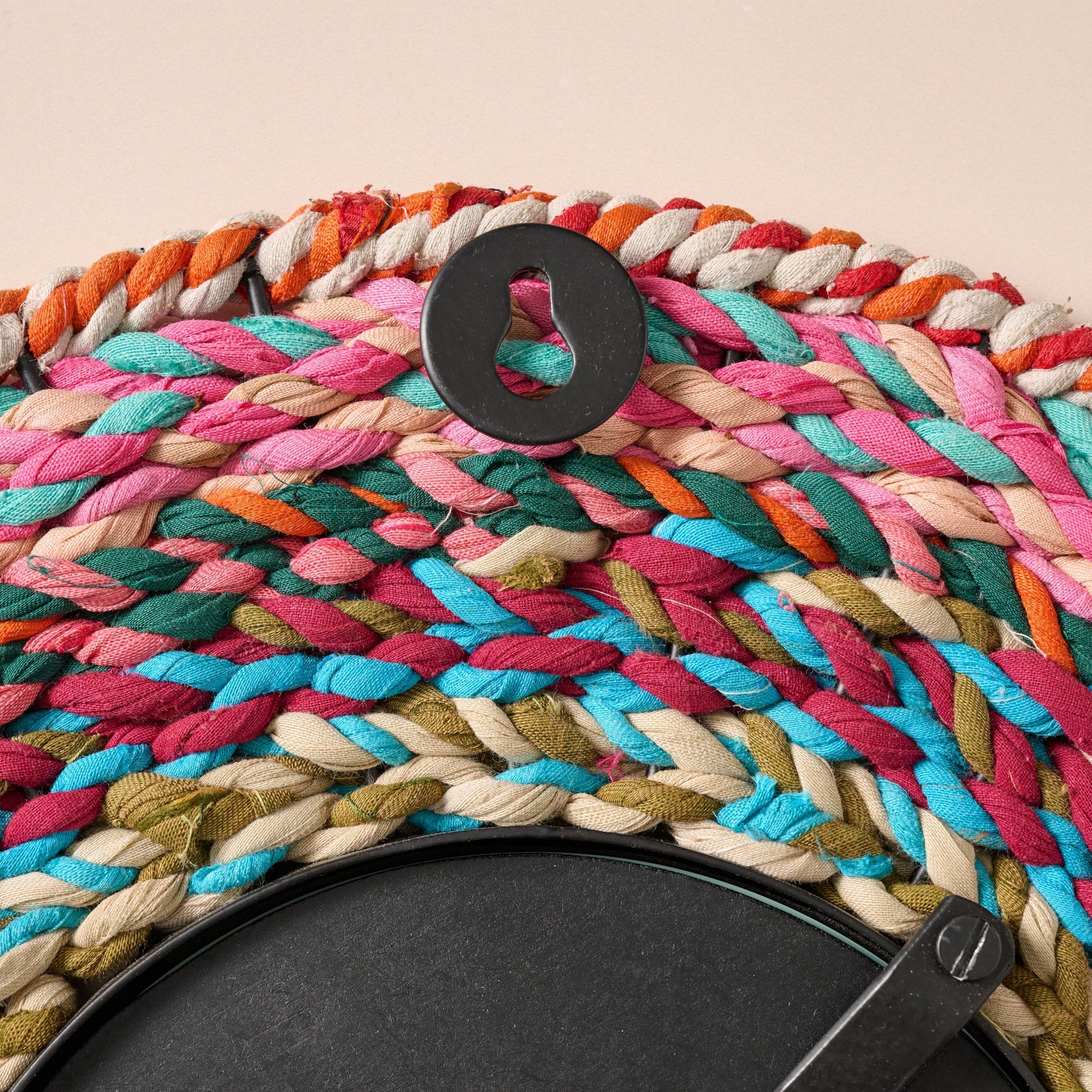 Mirror, mirror on the wall... is truly the most unique of all! The gorgeous Choti Braided Recycled Sari Mirror makes a statement no matter where you hang it, bringing rich color and texture to any space. Handcrafted using recycled sari fabric, each mirror is one-of-a-kind and crafted by artisans with Noah's Ark in India. Noah's Ark continues its work, training artisans to use alternative metals, source recycled materials and to create innovative designs grounded in traditional methods.