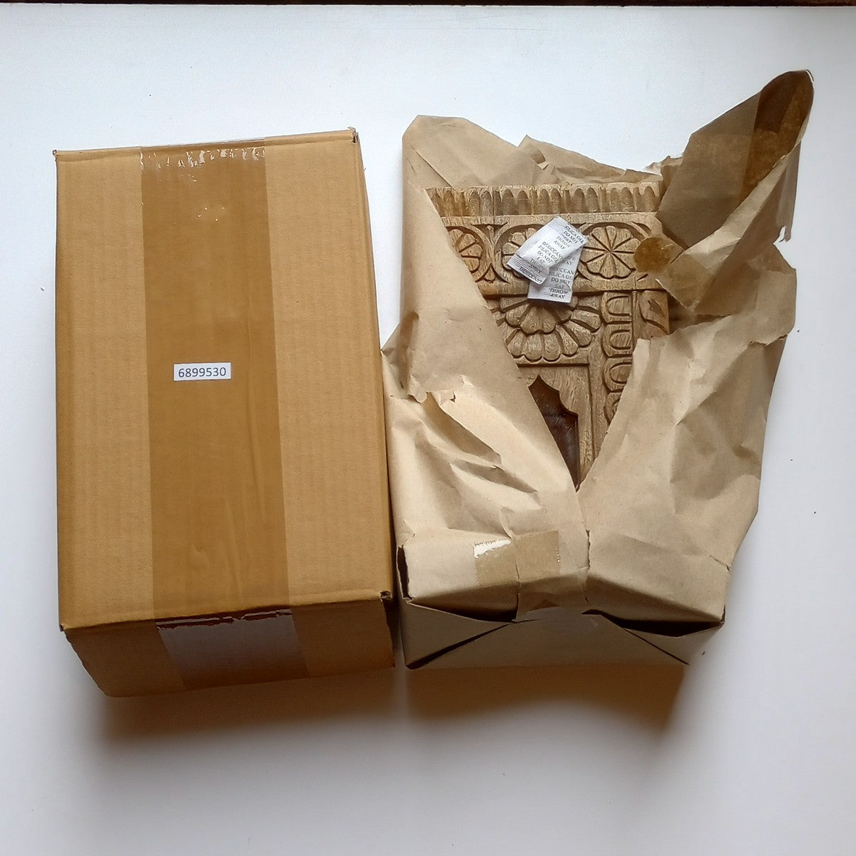 Add some functional flare to your space with the Dekhana Mango Wood Mirror Shelf - Single. Hand-carved with a beautiful floral design, this locally and sustainably sourced shelf features a small arched mirror and recessed shelf for added functionality. The natural mango wood makes it a truly unique piece. Grab your keys and check your reflection on your way out the door, or make this piece the focal point of your room! Handcrafted in India by artisans with Asha Handicrafts Association.