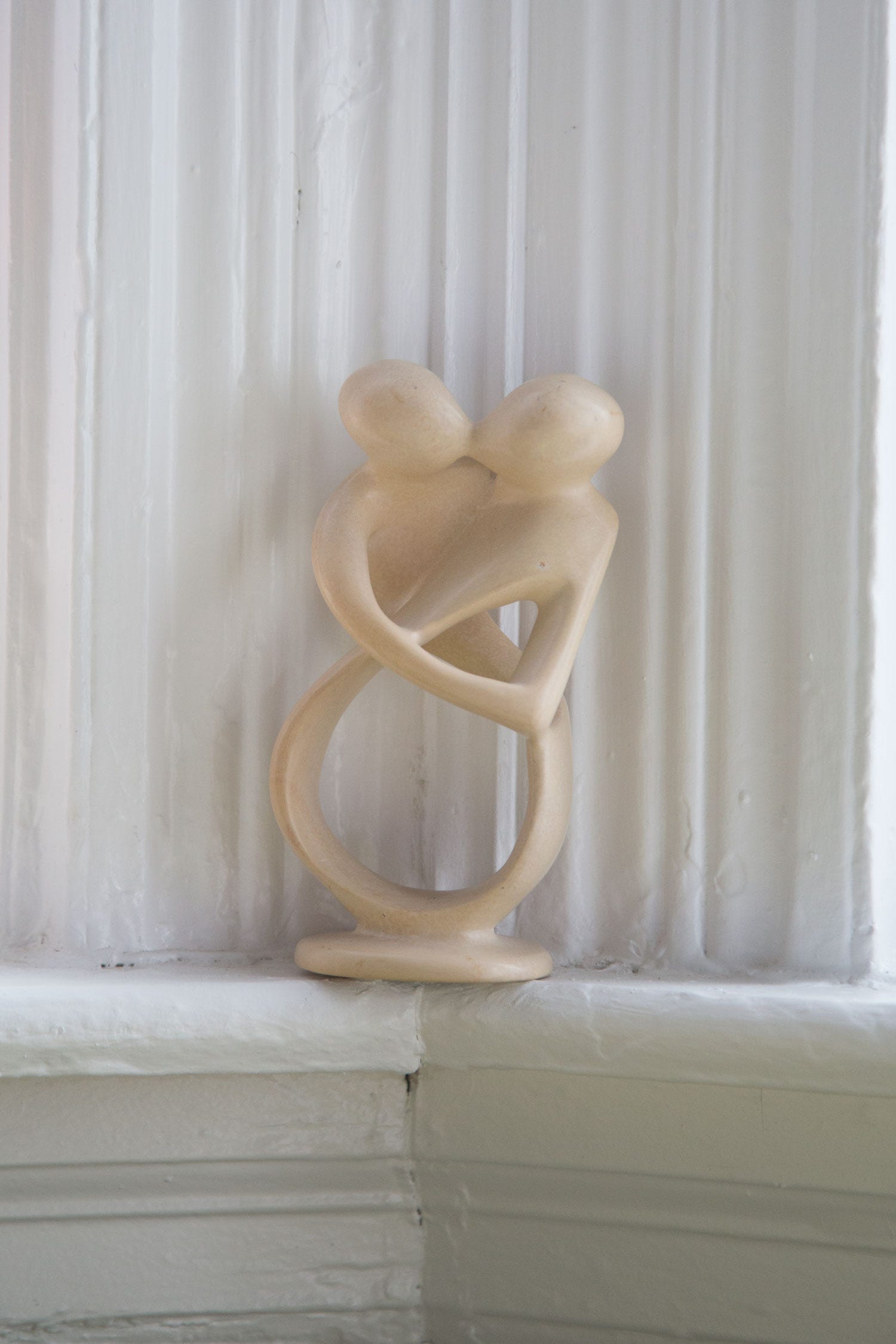 An intricate depiction of a loving embrace, this solid stone statue will last as long as your love. Hand-carved kisii, found only in Kenya, is a soft soapstone, easy to carve into many forms. Its satiny finish is achieved through multiple stages of sanding, followed by waxing.
