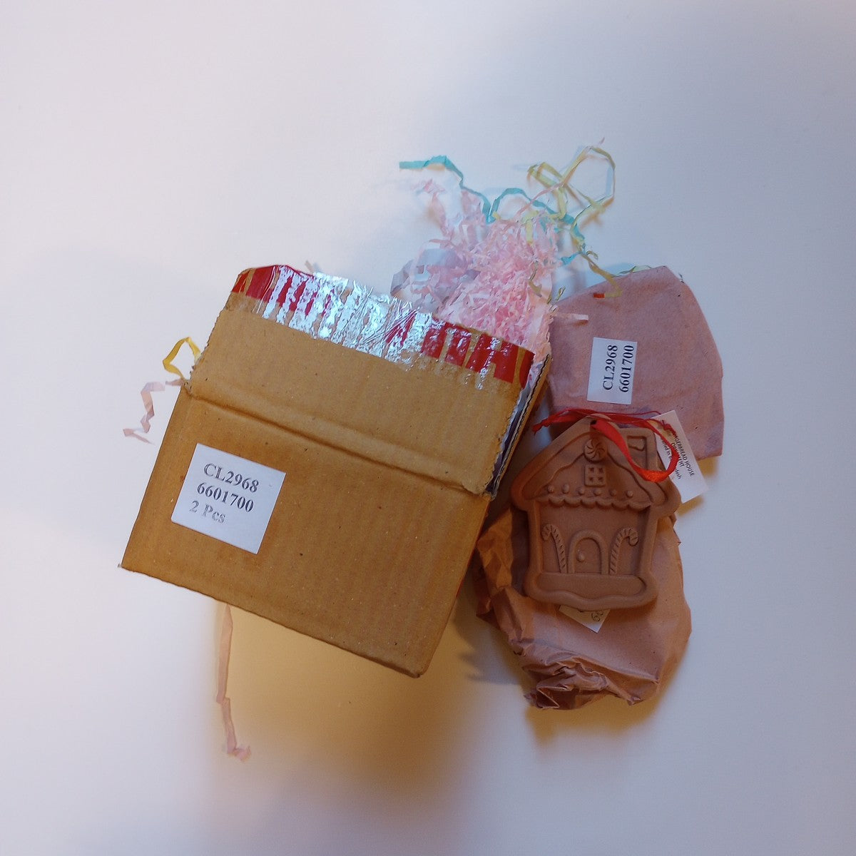Ornament/cookie stamp house M/2 t-cotta 4H rd/brn