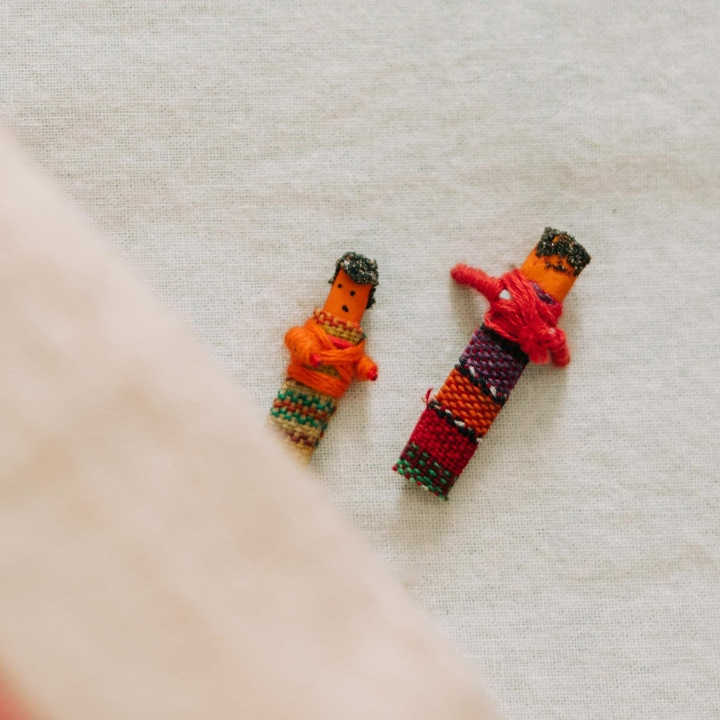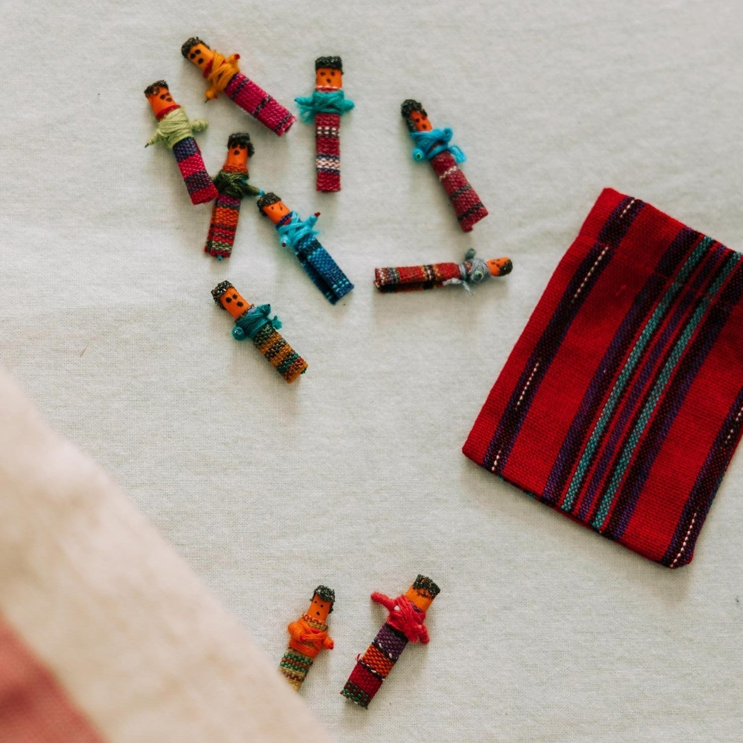 According to Guatemalan legend, worry dolls have the ability to remove worries from sleeping children. Children tell one worry to each doll when they go to bed at night and place the dolls under their pillow. In the morning the dolls have taken their worries away.