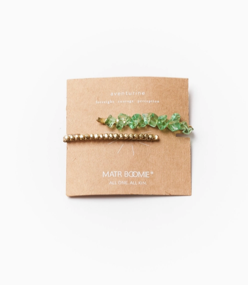 This set of two brass bobby pins features one hair slide with brass beads and another with semi precious stone chips