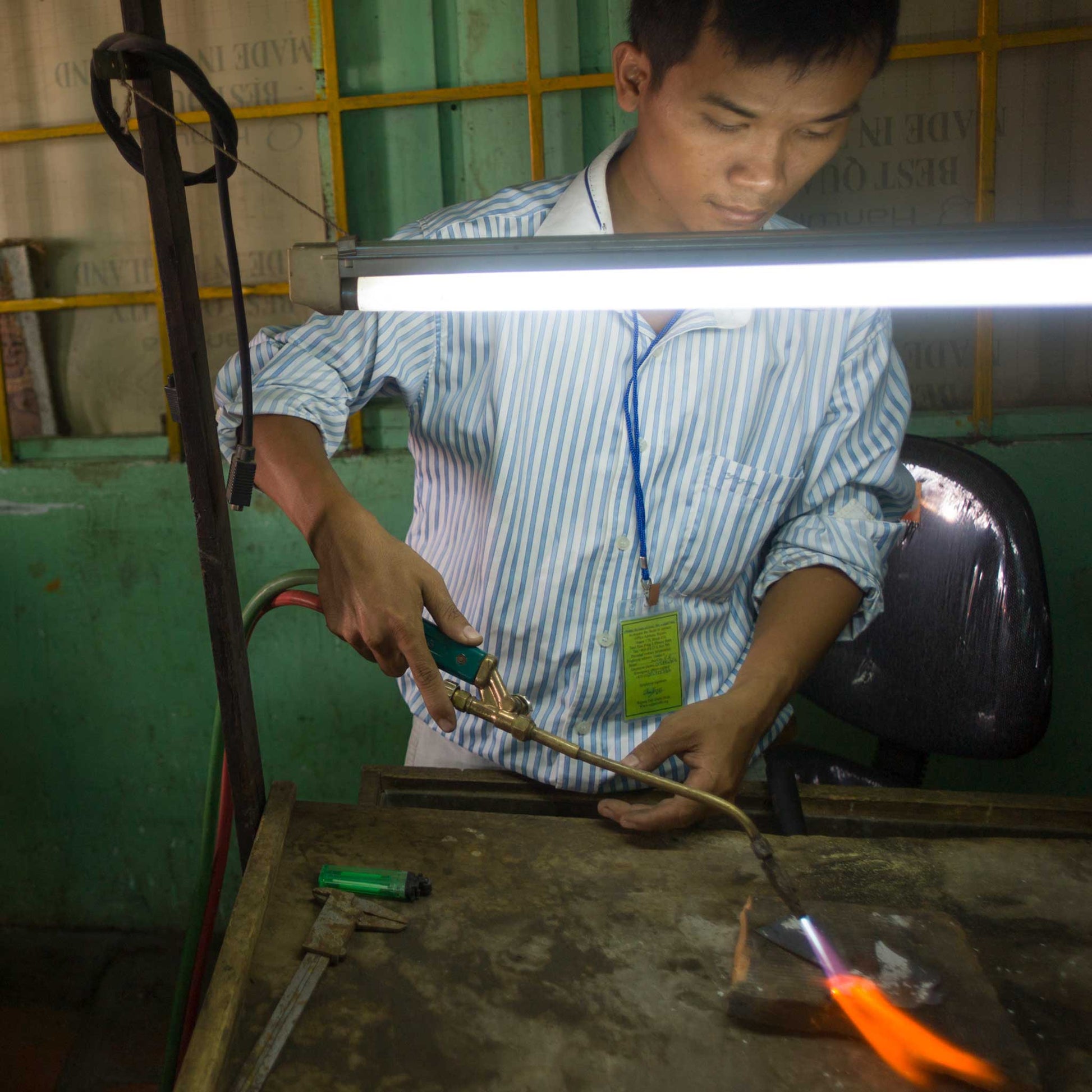 Sophisticated. Stunning. The Inversion Earrings are a go-to pair when dressing up a casual outfit or fully glammed out. Handcrafted by artisans in Cambodia with the Rajana Association, a nonprofit focused on sustaining traditional craft and providing business skills to these talented artisans, who transform symbols of war into beautiful jewelry. They melt down brass bomb casings, following their demining then recycle them into jewelry-wearable symbols of hope, progress, and peace.