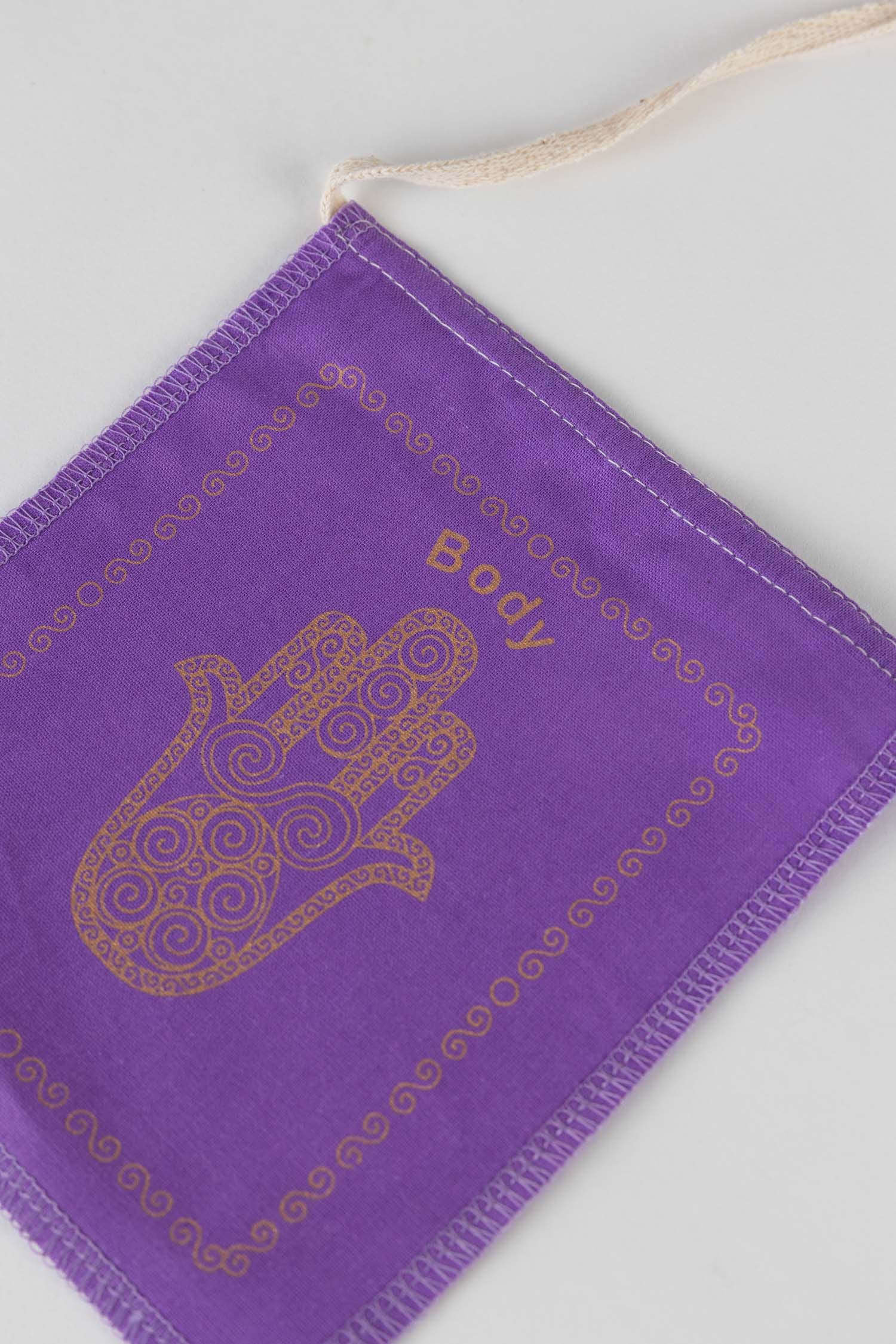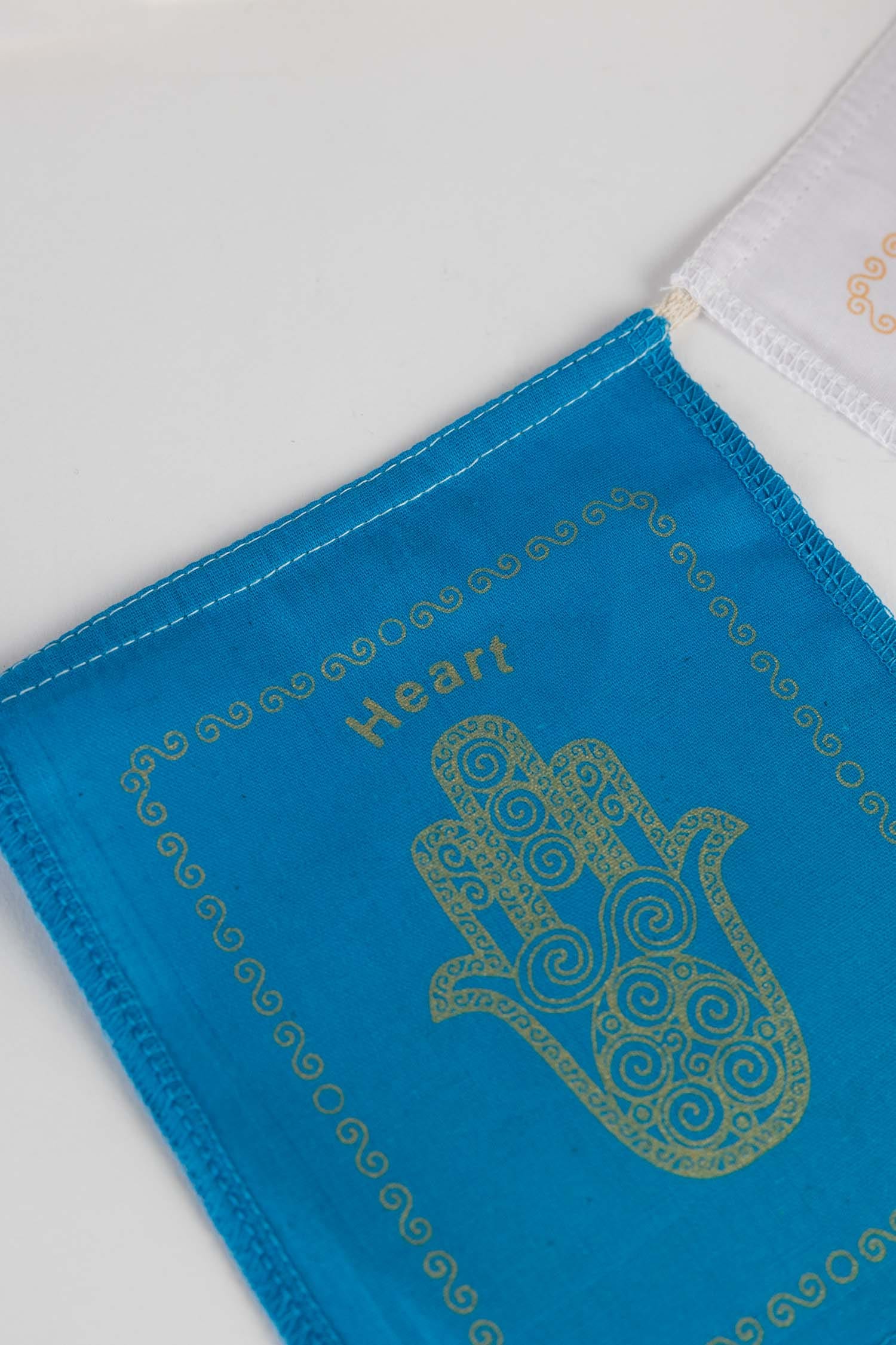 Inspired by Tibetan tradition where prayers are taken by the wind, these Jewish Healing Prayer Flags feature a hamsa, a hand image that symbolizes protection, strength, and blessings with calls to care for your body, heart, mind, and spirit. A beautiful gift and addition to a sukkah, backyard, room in your home to invite blessings in every day. Handcrafted by skilled artisans at Mahaguthi collective. 85% of the 1,000 artisans across 150 workshops are women who work in their homes in rural, mountainous regions, creating beautiful, handloomed goods.