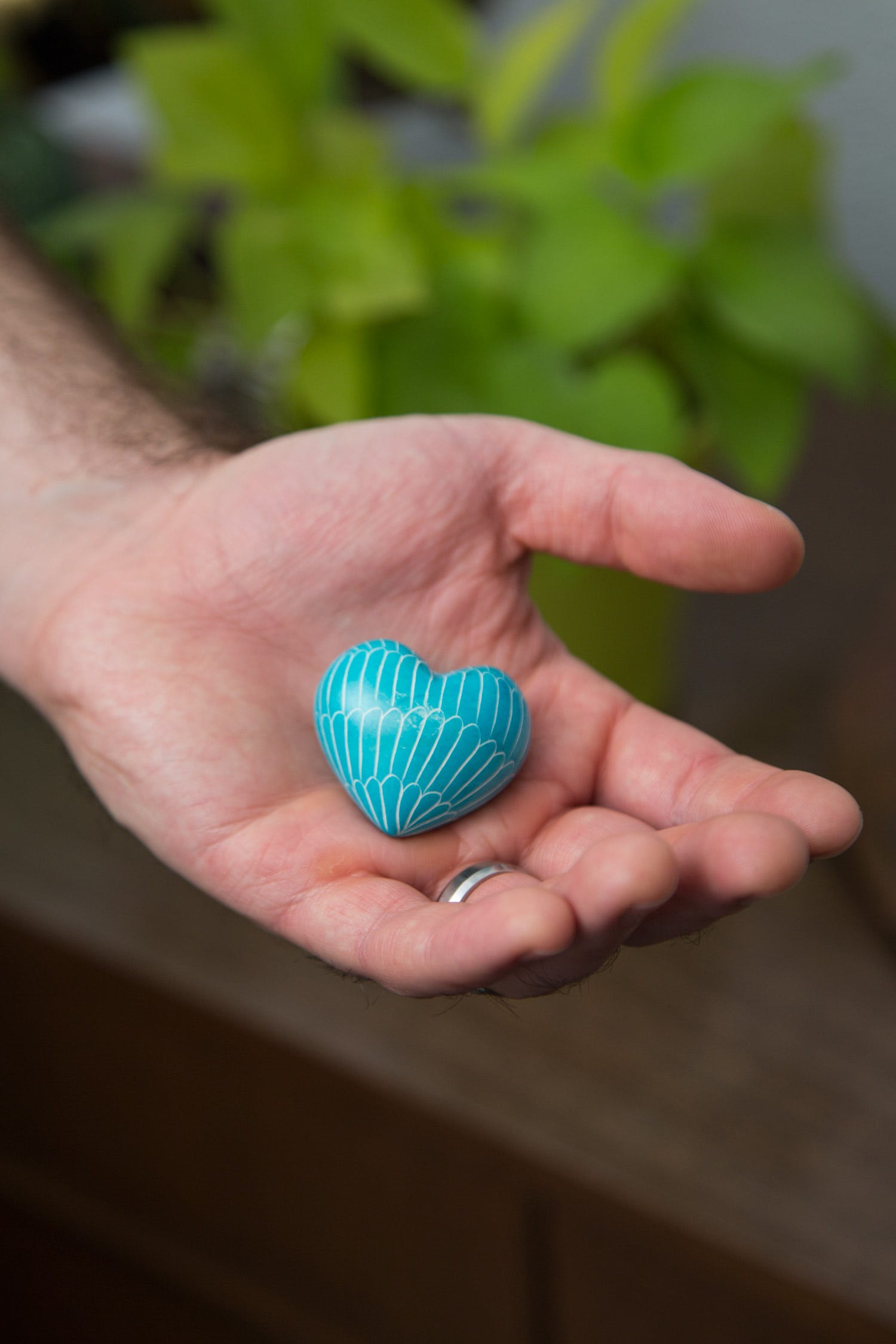 A little token of love that can be treasured forever, kisii stone hearts are colored in a wide array of colors and decorated with artistic designs of the maker's choosing. An expression of creativity for certain, this small heart is a great addition to a Valentine's Day gift or any moment to express love.