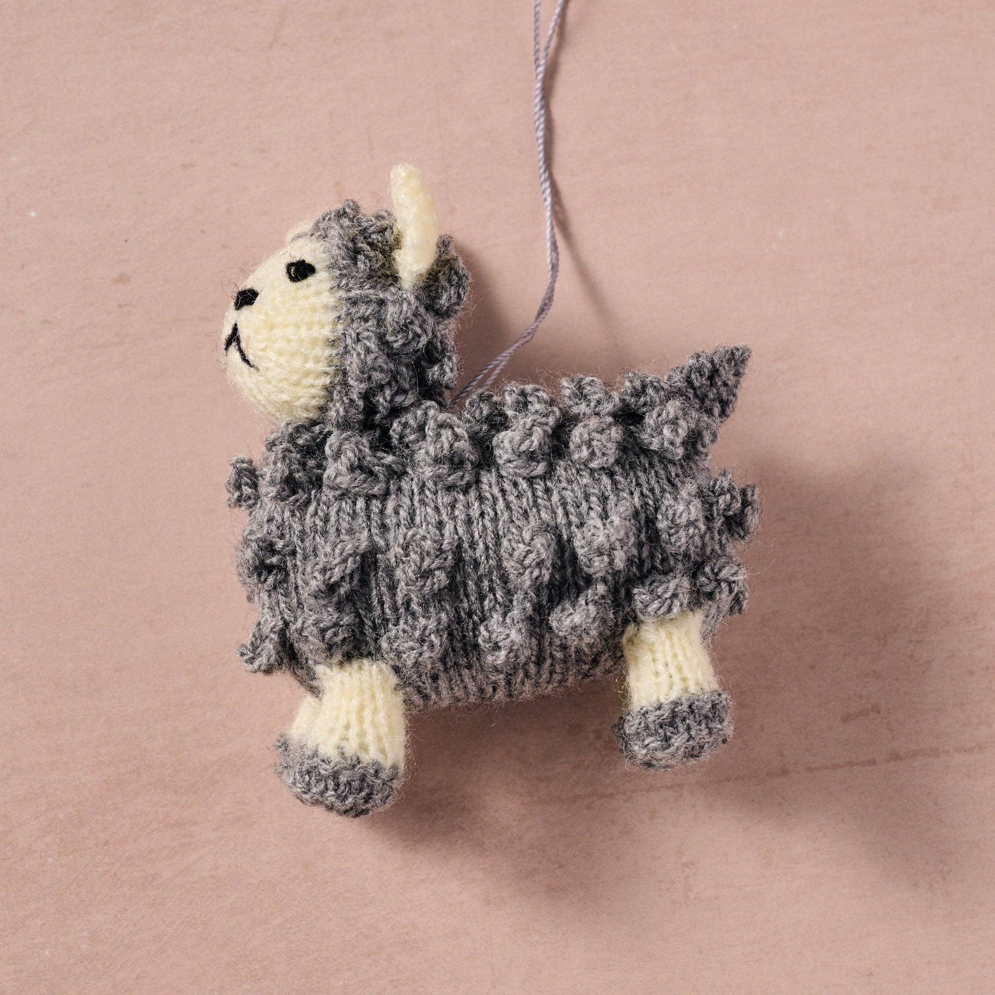 Materials: Acrylic Wool, Polyester - Measures: 4"L x 2"W x 3.5"H, Hanger: 4"L - Colors: Gray, White - Handcrafted in Peru