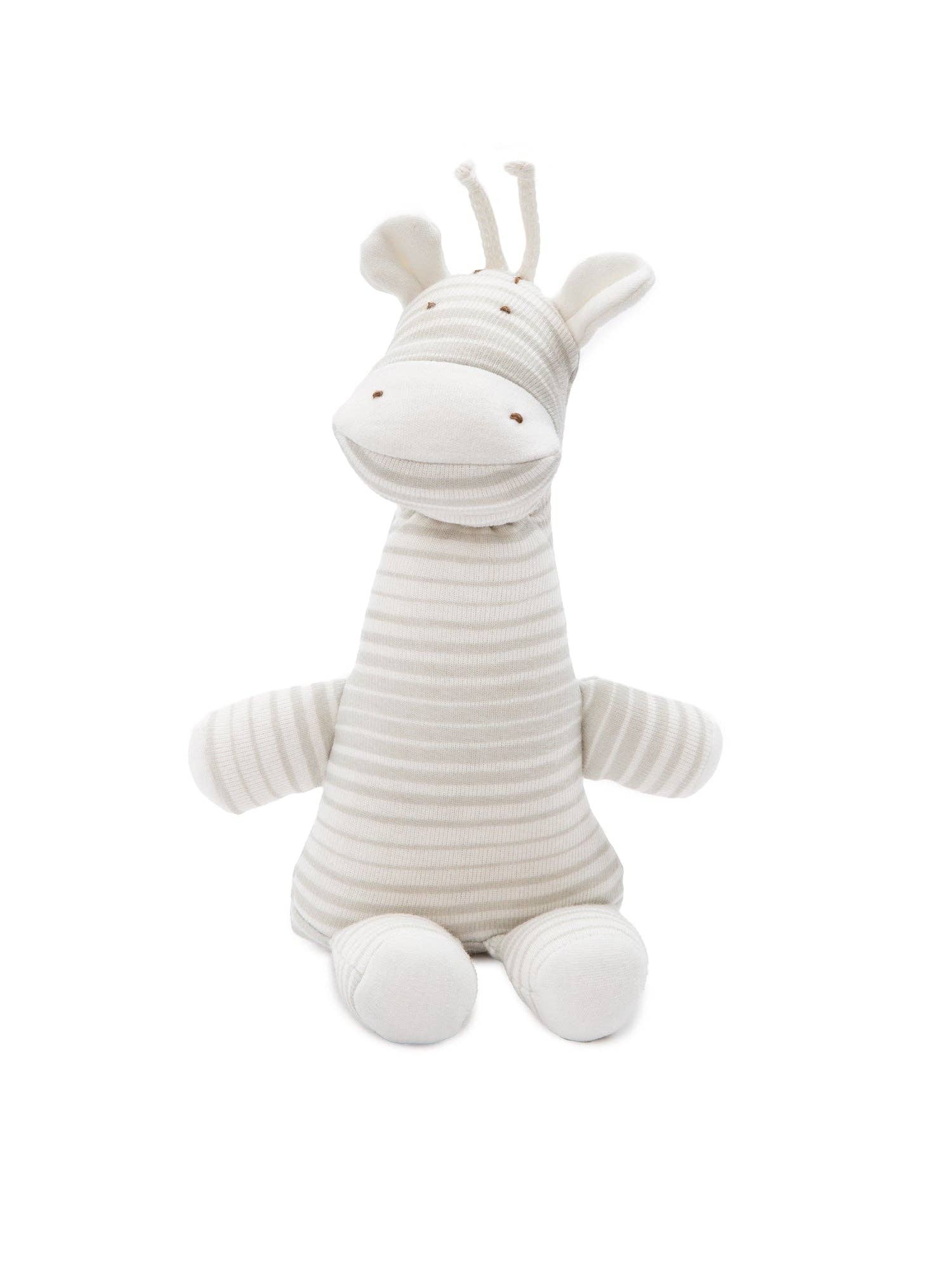 A sweet friend for your baby or toddler, our stuffed giraffe baby toy is a super fun shape that is easy for little hands to hold. This organic baby toy is made of super soft grey striped cotton with a hand embroidered face.