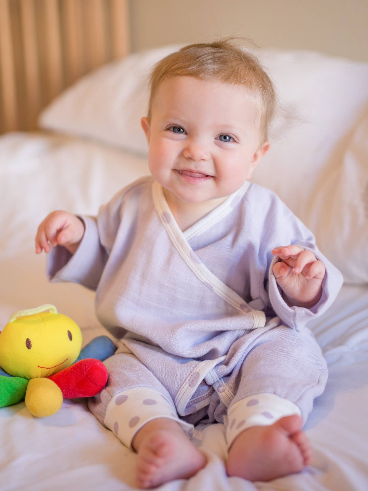 Organic Baby Muslin Side Snap Kimono, "Lavender"