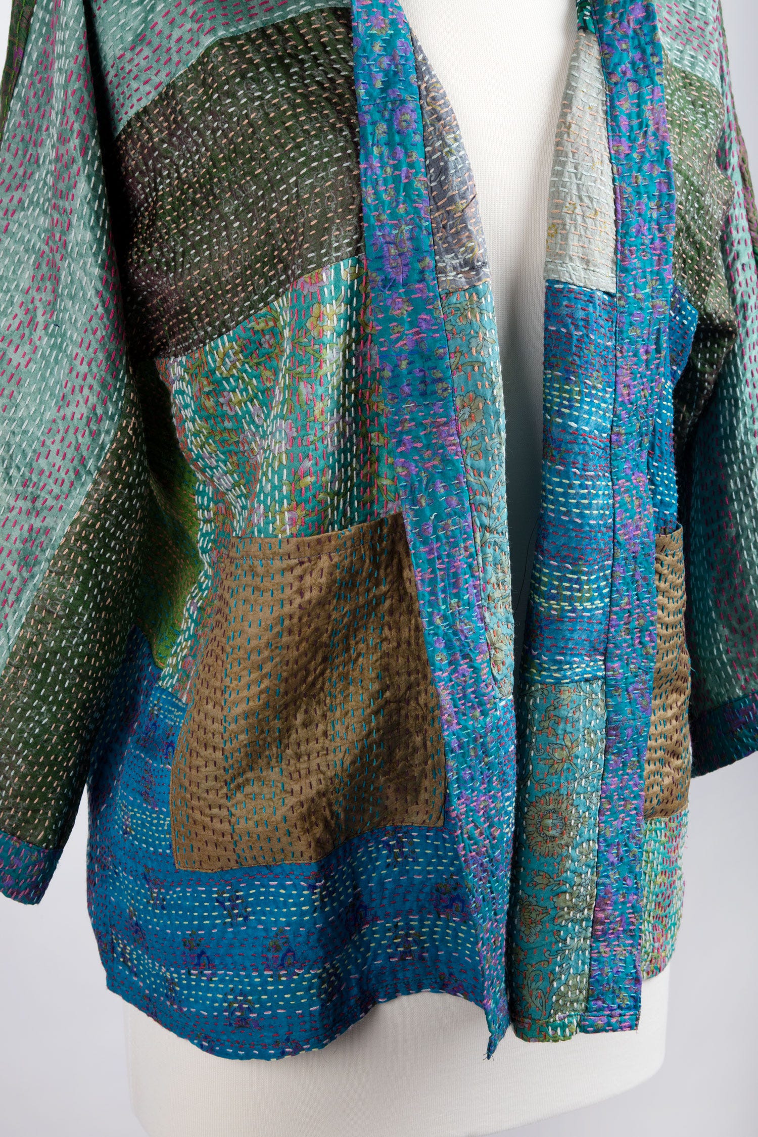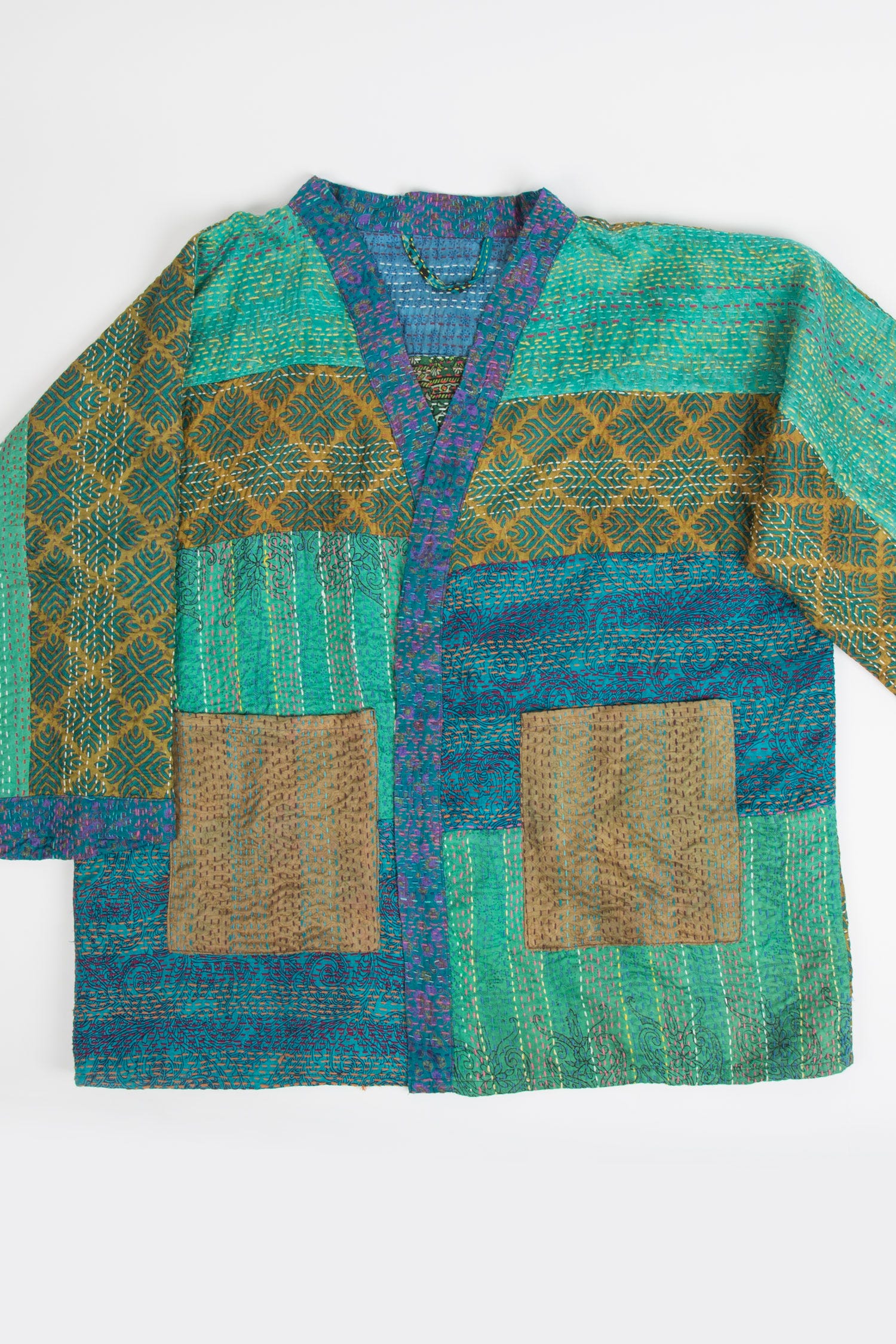 Kimono stitched upcycled sari 26L teal/green/multi