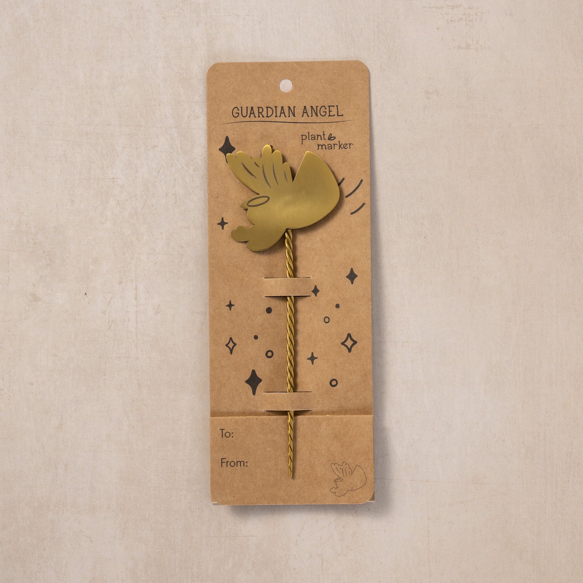 Add a protective and watchful presence to your flowerpot or garden with this whimsical guardian angel marker! The twisted rod design is a unique decorative element while the etched wing and halo details on the angel plate add finely crafted charm. Comes with a detachable message card printed with "To" and "From" to make gift-giving easy!