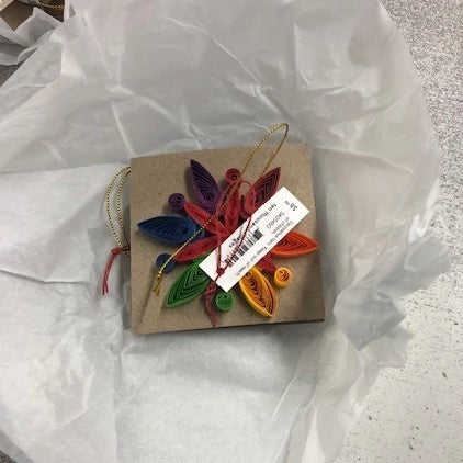 Celebrate it all this holiday season with the Rainbow Snowflake Quilled Paper Ornament. Recycled paper is carefully wound around a quill. The coils are then glued into intricate shapes like this colorful snowflake. It's an art that dates back hundreds of years. Today, these quilled paper ornaments are handcrafted by artisans working with Mai Handicrafts in Vietnam. Many of the artisans are women who are able to work in their homes using this traditional skill, earning sustainable incomes while caring for their children.