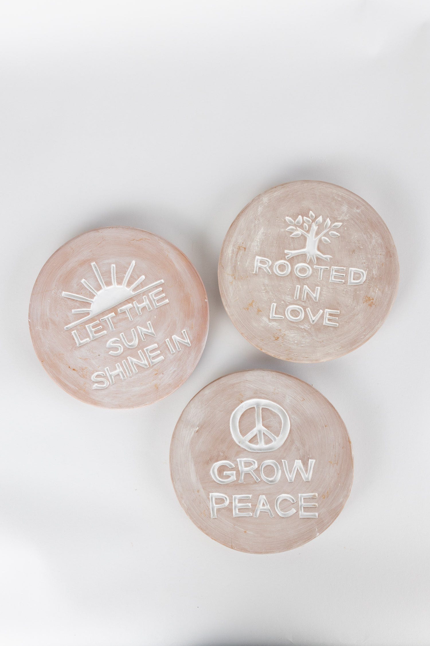 Garden plaque Rooted in Love t-cotta 8.5D whtwash