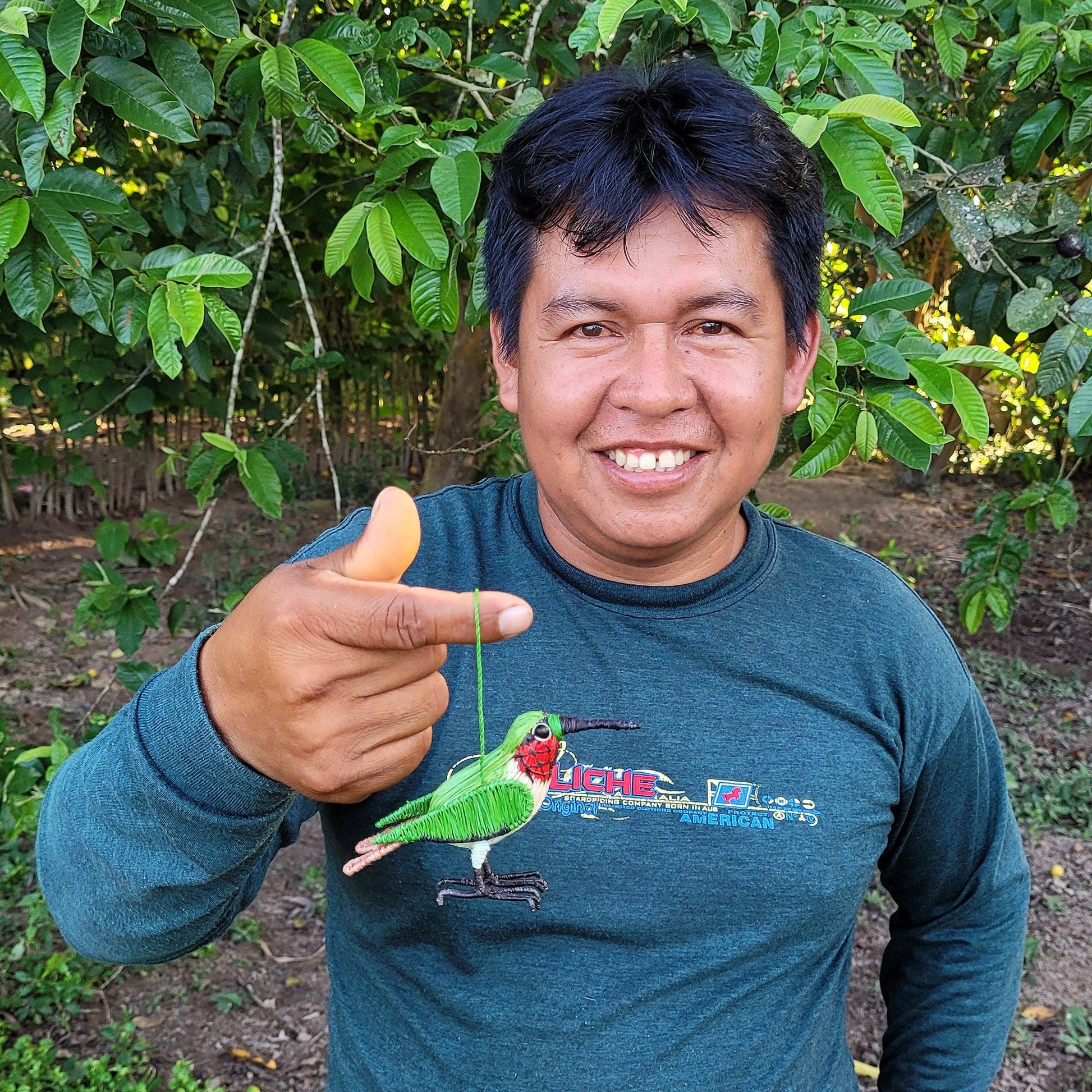 The sale of these ornaments supports forest conservation and helps meet local needs in traditional communities in Peru. These bird ornaments were made artisans from the villages of Amazonas, San Francisco, and Puerto Miguel on the Maranon River. Each ornament comes with a tag listing the name and home of the artisan who made it and the plants used to make it.