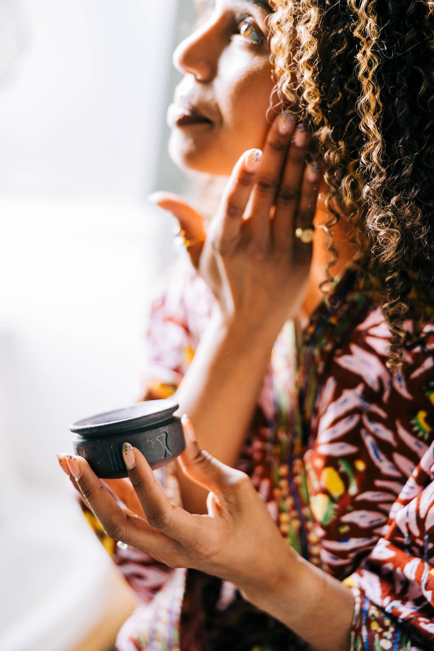 In addition to the harvesting and processing of shea butter, and the production of the cream itself, this product provides work for fairly paid artisans who produce the ceramic container and the recycled glass beads used for decoration.