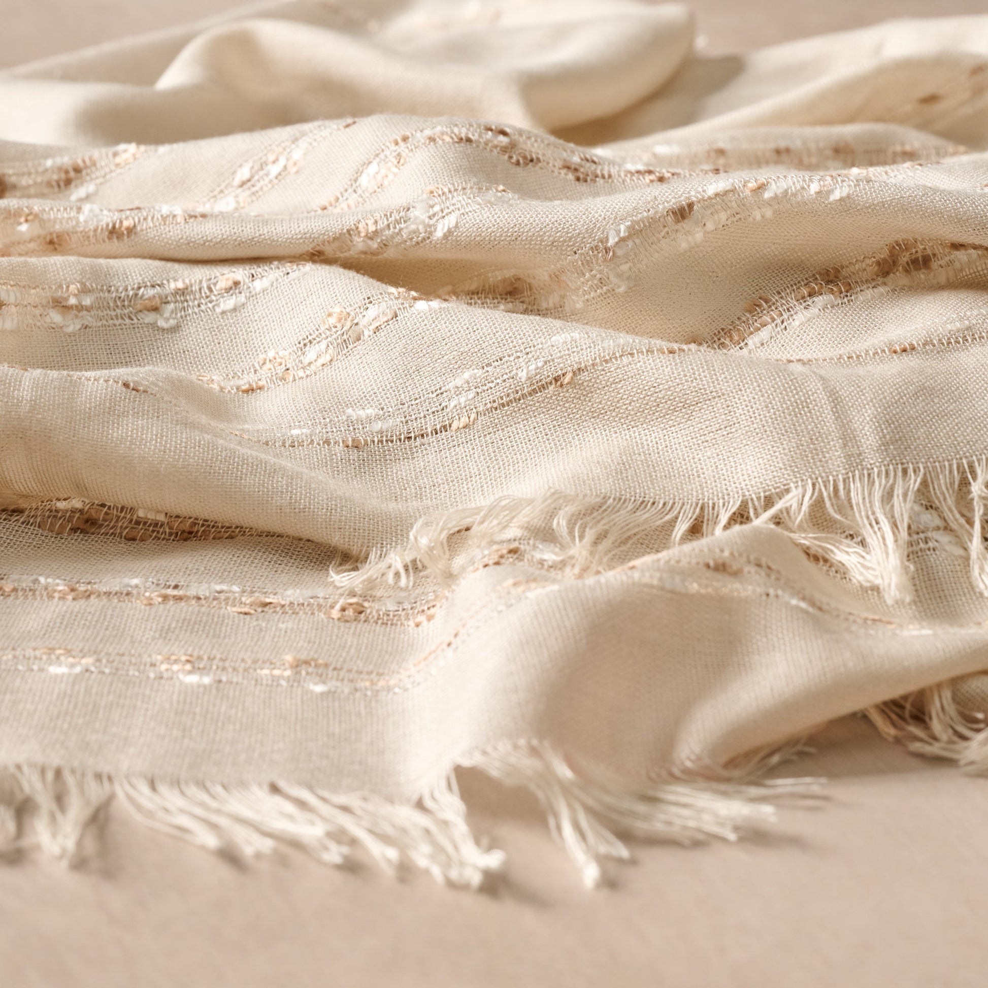 Ward off the coming autumn chill with this beautiful scarf! Made from viscose - a plant-based textile made from organic agricultural products that are eco-friendly and biodegradable - this is must-have addition to your wardrobe that makes the transitions between seasons a breeze thanks to its classic styling and light weight. The neutral, goes-with-everything color pairs as well with a sweater and jeans as it does with a tee shirt and shorts! Handcrafted by artisans with the Craft Resource Center (CRC) in India, which helps small craft workshops develop into self-sustaining businesses.