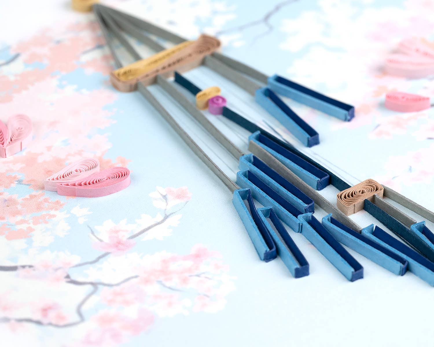 Feel the breeze and music of the wind with the beautiful quilled wind chime. Set in a cherry blossom tree, you can watch the breeze go by with the motion of the pink sailor.