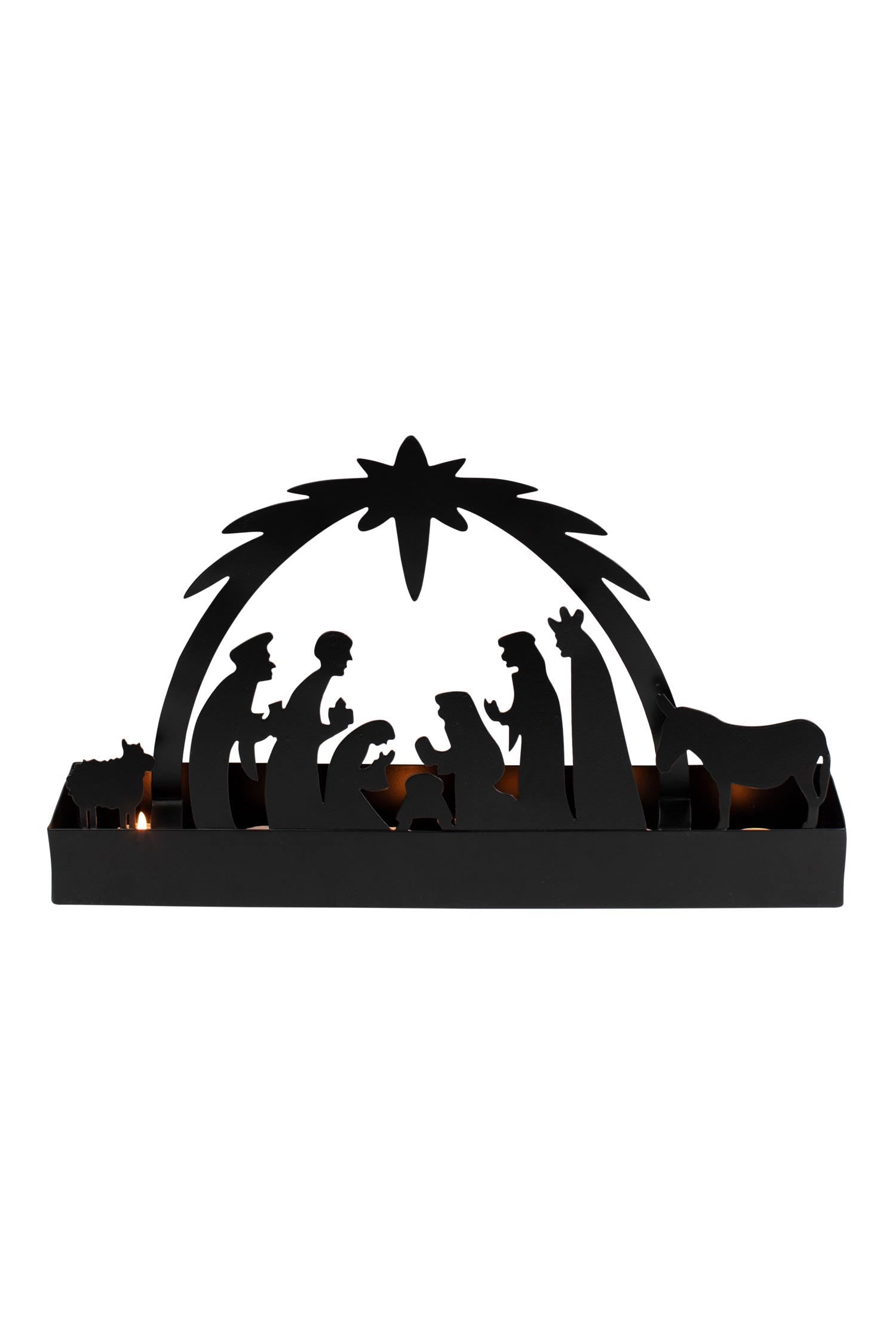 Nativity silhouette tray iron 17Lx3.5Wx10.5H black