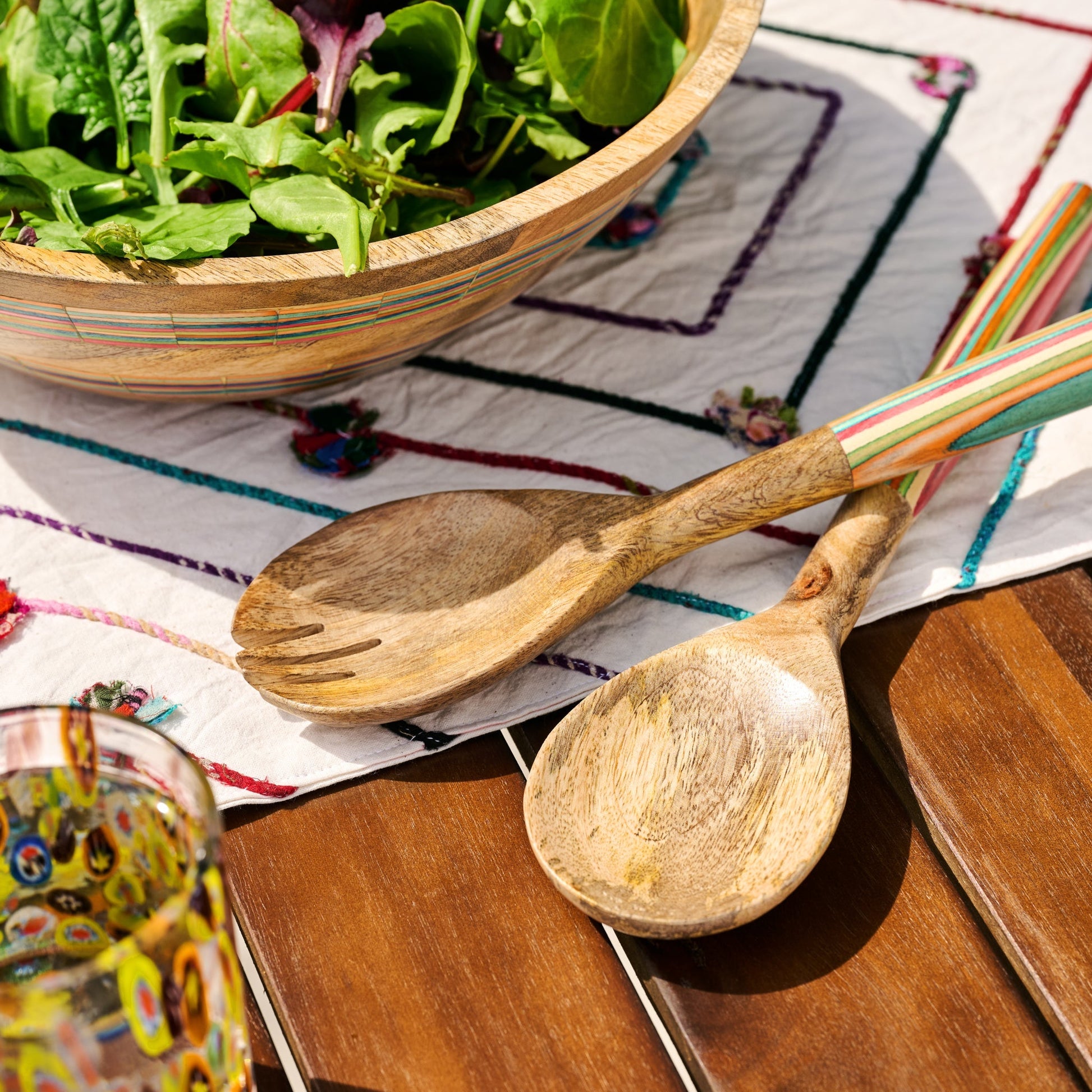 Salad servers striped s/2 mango wood 12L brn/multi