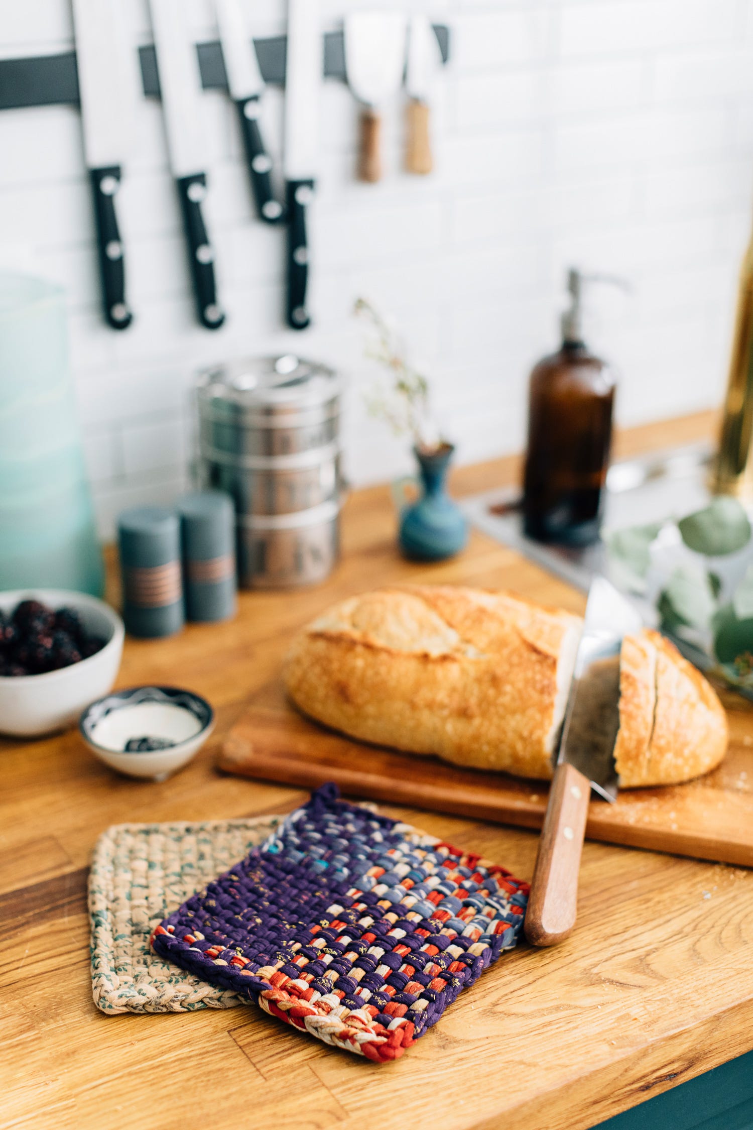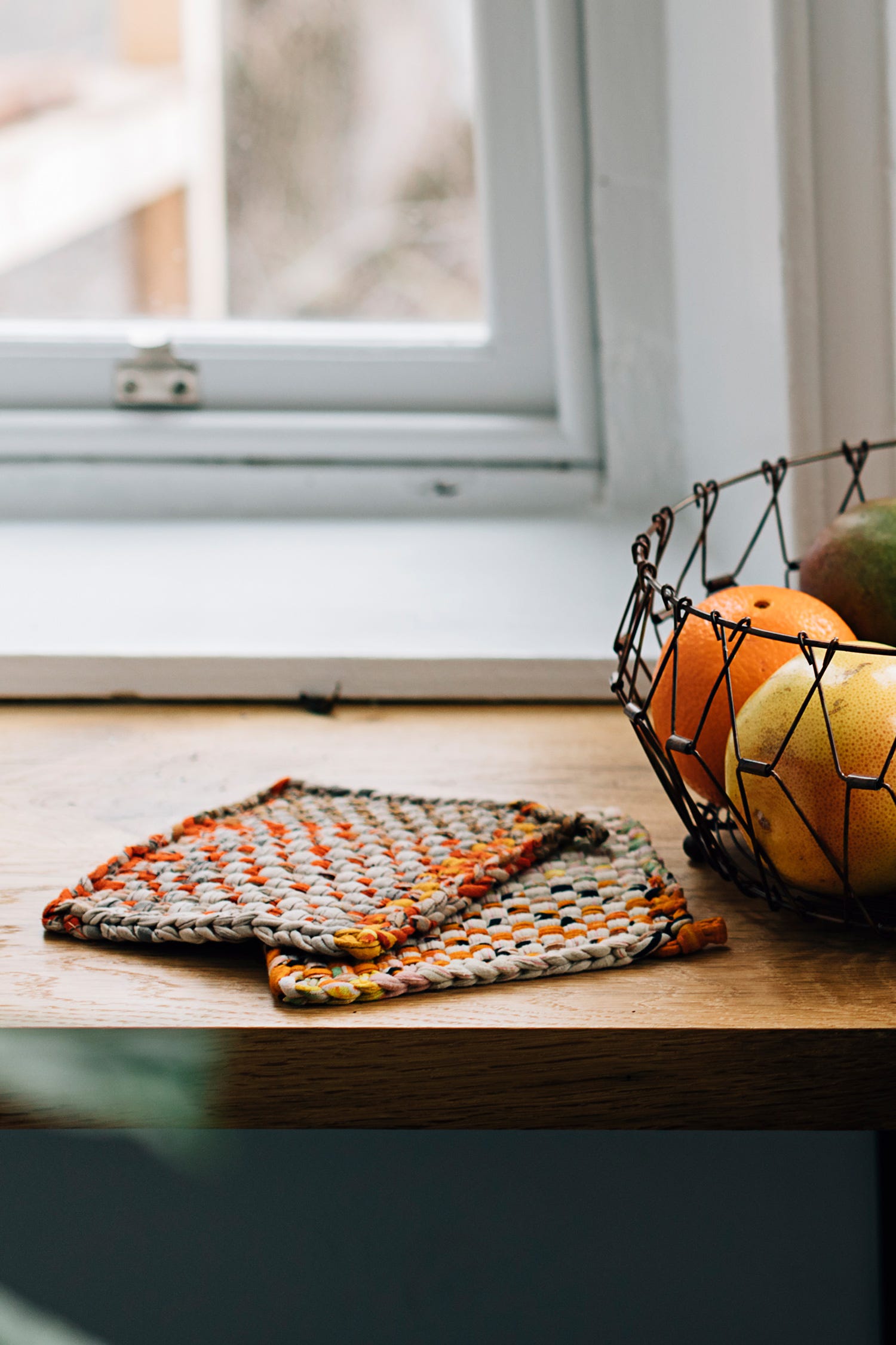 Recycle, repurpose, recreate. Artisans of Prokritee in Bangladesh make new hand-woven hot mats for your kitchen, using recycled sari cloth from the subcontinent. Cotton cloth of many colors.