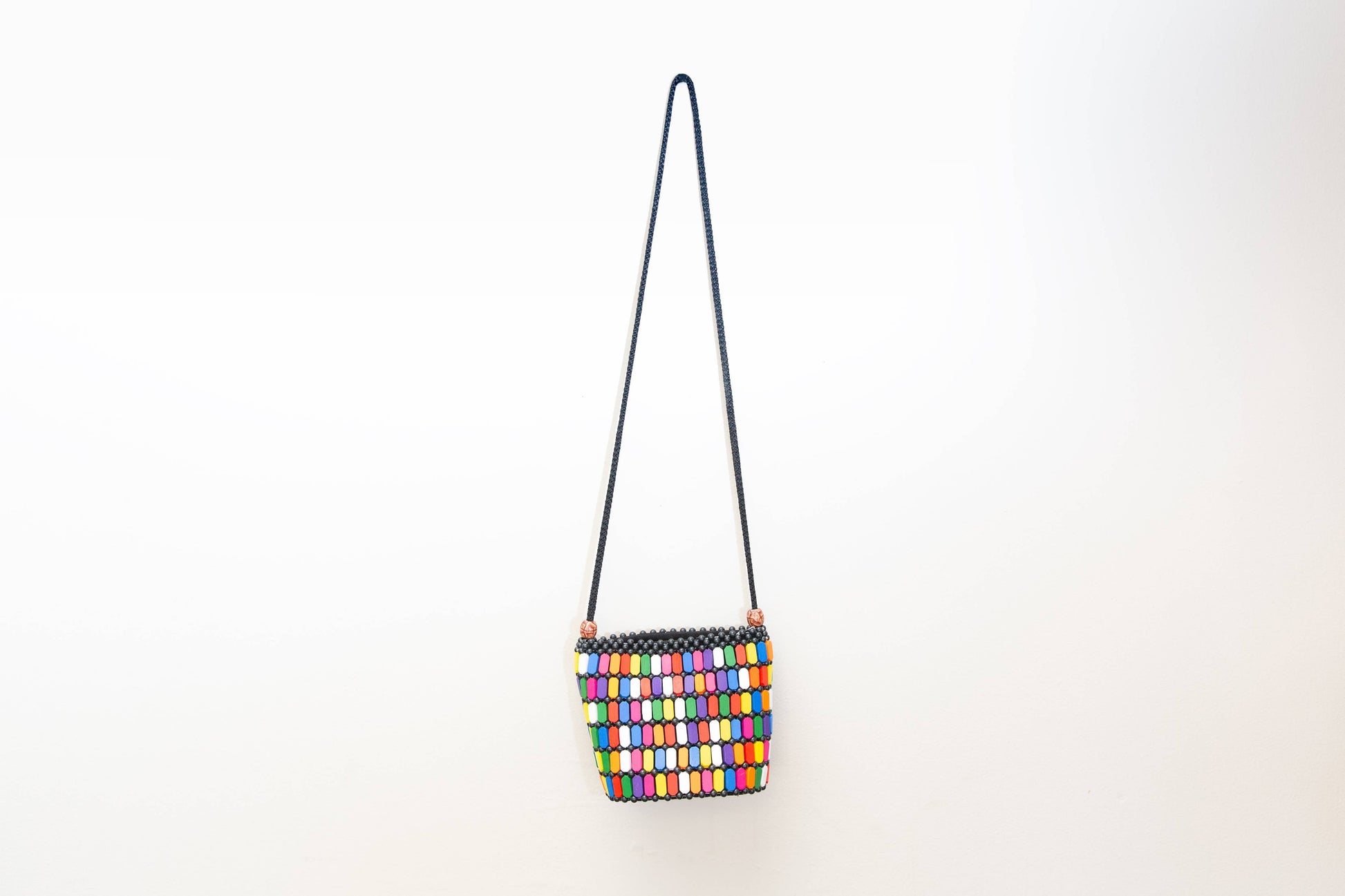 Add a joyful pop of color to your outfit with our Fair Trade Pebble-Shaped Crossbody Wooden Purse in Rainbow Multicolor. This eye-catching accessory is handmade in Kenya using sustainably sourced African wood beads, polished and painted in vibrant, multicolored hues. The organic, pebble-inspired shape gives it a contemporary twist while honoring traditional craftsmanship.